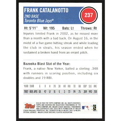 This is a 2003 Bazooka Frank Catalanotto baseball card. The card is #237 and pictures show condition.