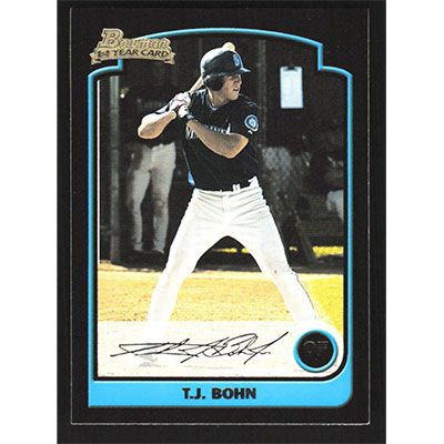 This is a 2003 Bowman T.J. Bohn baseball card. The card is #180 and pictures show condition.