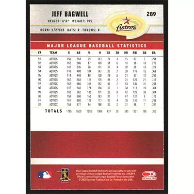 This is a 2003 Donruss Jeff Bagwell baseball card. The card is #289 and pictures show condition.