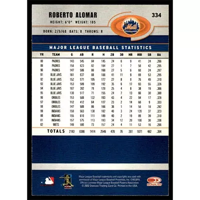 This is a 2003 Donruss Roberto Alomar baseball card. The card is #334 and pictures show condition.