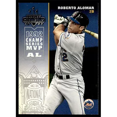 This is a 2003 Donruss Champions Roberto Alomar baseball card. The card is #166 and pictures show condition.