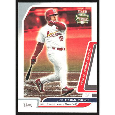 This is a 2003 Fleer Focus Jersey Edition Jim Edmonds baseball card. The card is #123 and pictures show condition.