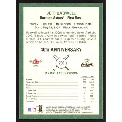 This is a 2003 Fleer Tradition Jeff Bagwell baseball card. The card is #200 and pictures show condition.