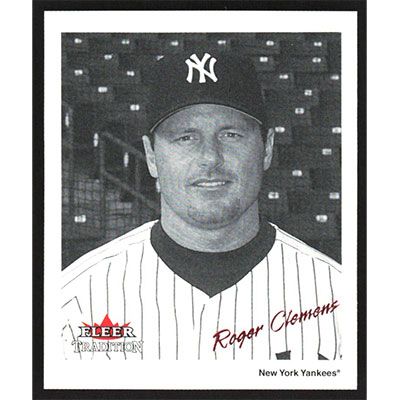 This is a 2003 Fleer Tradition Black-White Goudey Red Roger Clemens baseball card. The card is #9 and pictures show condition. This card is limited; #'d 369/500.