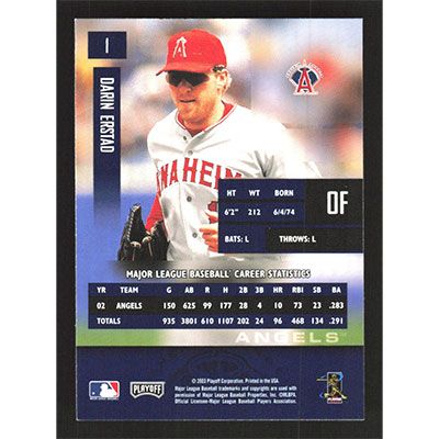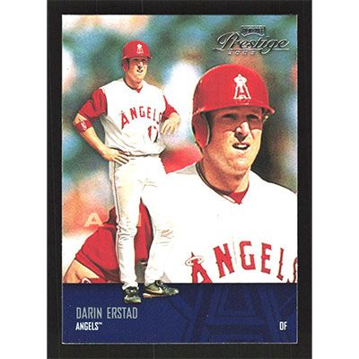 This is a 2003 Playoff Prestige Darin Erstad baseball card. The card is #1 and pictures show condition.