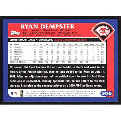 This is a 2003 Topps Ryan Dempster baseball card. The card is #506 and pictures show condition.