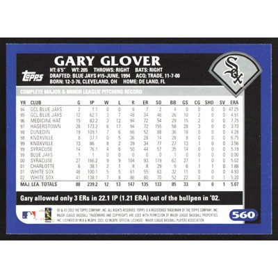 This is a 2003 Topps Gary Glover baseball card. The card is #560 and pictures show condition.