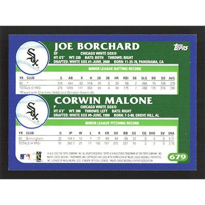 This is a 2003 Topps Joe Borchard and Corwin Malone Prospects baseball card. The card is #679 and pictures show condition.