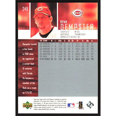 This is a 2003 Upper Deck Ryan Dempster baseball card. The card is #249 and pictures show condition.