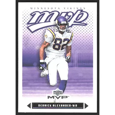 This is a 2003 Upper Deck MVP Derrick Alexander football card. The card is #268 and pictures show condition.