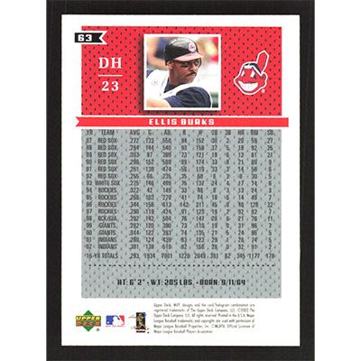 This is a 2003 Upper Deck MVP Ellis Burks baseball card. The card is #63 and pictures show condition.