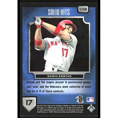 This is a 2003 Upper Deck Victory Darin Erstad Solid Hits baseball card. The card is #108 and pictures show condition.