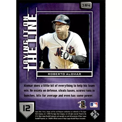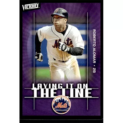 This is a 2003 Upper Deck Victory Roberto Alomar Laying it on the Line baseball card. The card is #164 and pictures show condition. Team(s): New York Mets