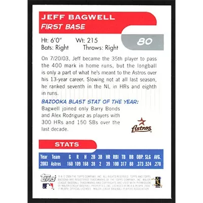 This is a 2004 Bazooka Jeff Bagwell baseball card. The card is #80 and pictures show condition.