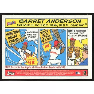 This is a 2004 Bazooka Comics Garret Anderson baseball card. The card is #BC1 and pictures show condition.