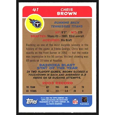 This is a 2004 Bazooka Gold Chris Brown football card. The card is #41 and pictures show condition.