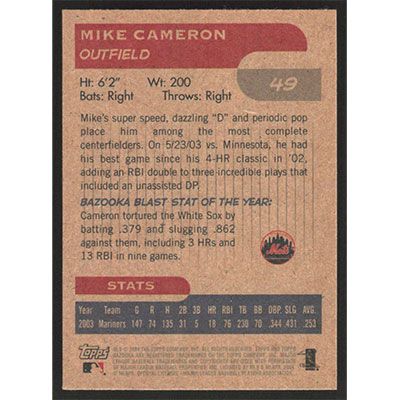 This is a 2004 Bazooka Minis Mike Cameron baseball card. The card is #49 and pictures show condition.