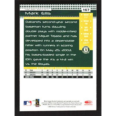 This is a 2004 Donruss Mark Ellis baseball card. The card is #167 and pictures show condition.