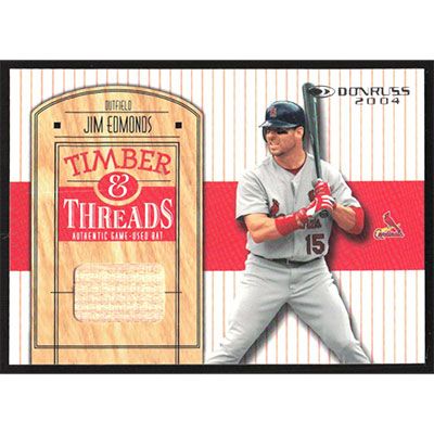 This is a 2004 Donruss Timber & Threads Jim Edmonds Bat baseball card. The card is #TT-26 and pictures show condition.