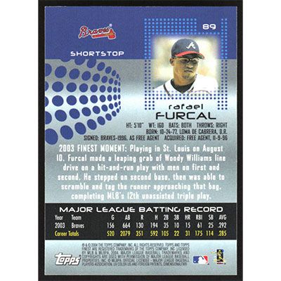 This is a 2004 Finest Rafael Furcal baseball card. The card is #89 and pictures show condition.