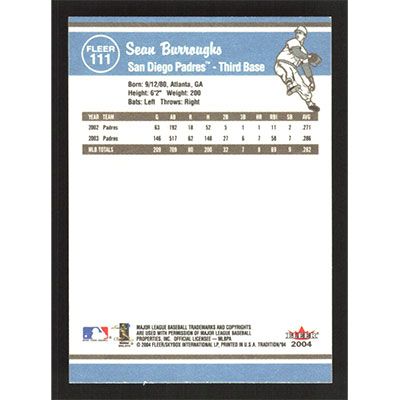 This is a 2004 Fleer Tradition Sean Burroughs baseball card. The card is #111 and pictures show condition.