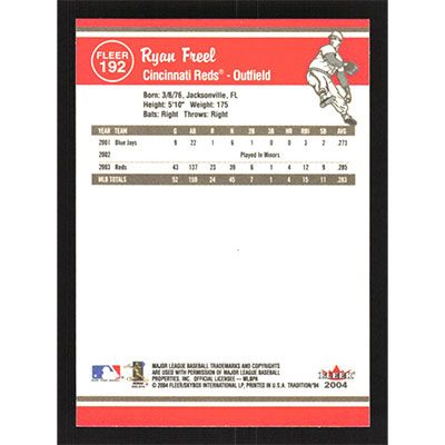 This is a 2004 Fleer Tradition Ryan Freel baseball card. The card is #192 and pictures show condition.