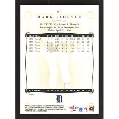This is a 2004 Greats of the Game Mark Fidrych baseball card. The card is #90 and pictures show condition.