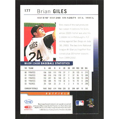 This is a 2004 Leaf Brian Giles baseball card. The card is #177 and pictures show condition.