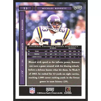 This is a 2004 Playoff Honors Michael Bennett football card. The card is #53 and pictures show condition.