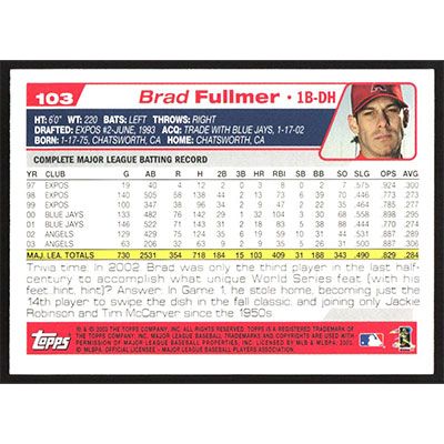 This is a 2004 Topps Brad Fullmer baseball card. The card is #103 and pictures show condition.