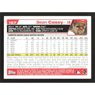 This is a 2004 Topps Sean Casey baseball card. The card is #167 and pictures show condition.