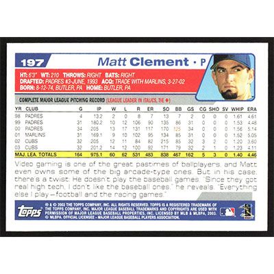 This is a 2004 Topps Matt Clement baseball card. The card is #197 and pictures show condition.