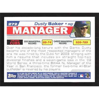 This is a 2004 Topps Dusty Baker baseball card. The card is #272 and pictures show condition.