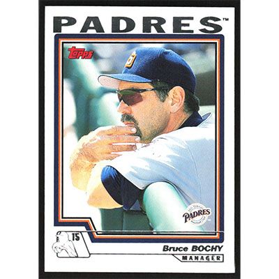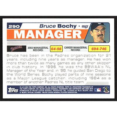 This is a 2004 Topps Bruce Bochy baseball card. The card is #290 and pictures show condition.