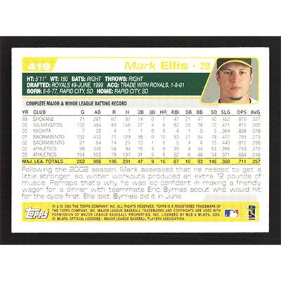 This is a 2004 Topps Mark Ellis baseball card. The card is #419 and pictures show condition.