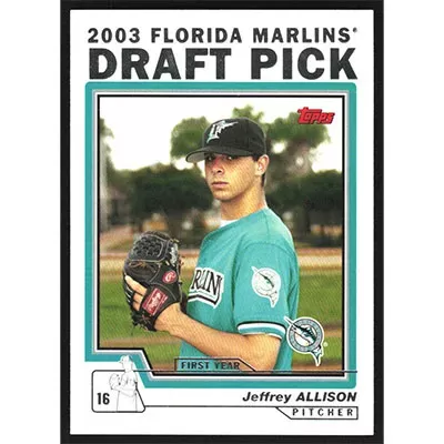 This is a 2004 Topps Jeffrey Allison Draft Pick baseball card. The card is #672 and pictures show condition. Team(s): Florida Marlins Rookie Card (RC)