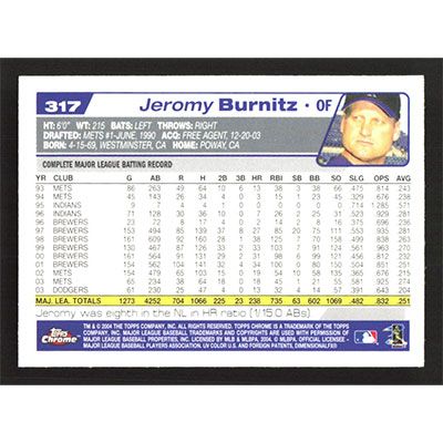 This is a 2004 Topps Chrome Jeromy Burnitz baseball card. The card is #317 and pictures show condition.