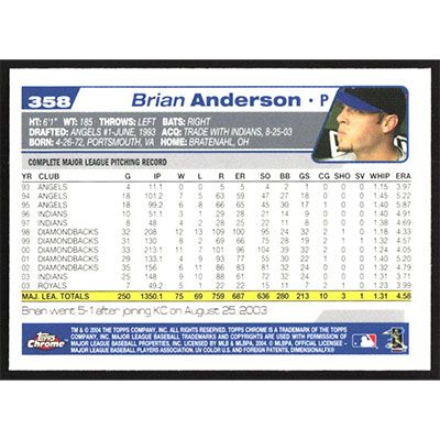 This is a 2004 Topps Chrome Brian Anderson baseball card. The card is #358 and pictures show condition.