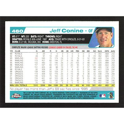 This is a 2004 Topps Chrome Jeff Conine baseball card. The card is #460 and pictures show condition.