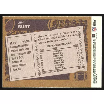 This is a 2004 Topps Fan Favorites Jim Burt football card. The card is #37 and pictures show condition.