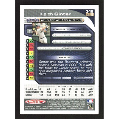 This is a 2004 Topps Total Silver Keith Ginter baseball card. The card is #348 and pictures show condition.