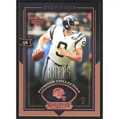 This is a 2004 UD Diamond All-Star Drew Brees football card. The card is #8 and pictures show condition.