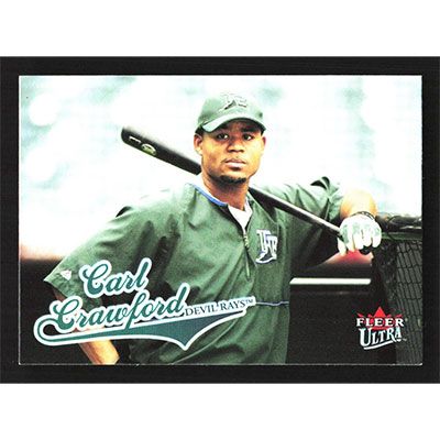 This is a 2004 Ultra Carl Crawford baseball card. The card is #62 and pictures show condition.