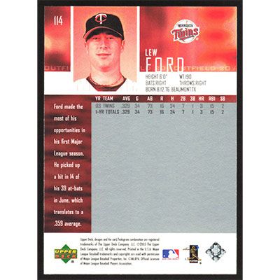 This is a 2004 Upper Deck Lew Ford baseball card. The card is #114 and pictures show condition.