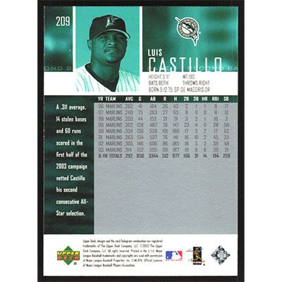 This is a 2004 Upper Deck Luis Castillo baseball card. The card is #209 and pictures show condition.