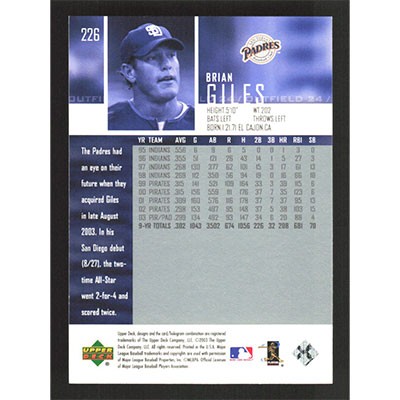This is a 2004 Upper Deck Brian Giles baseball card. The card is #226 and pictures show condition.