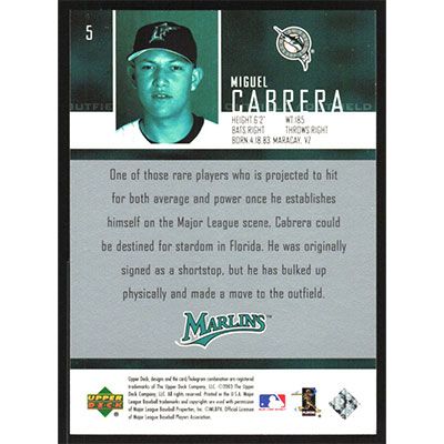 This is a 2004 Upper Deck Miguel Cabrera Star Rookies baseball card. The card is #5 and pictures show condition.
