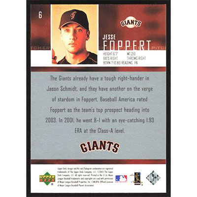 This is a 2004 Upper Deck Jesse Foppert Star Rookies baseball card. The card is #6 and pictures show condition.