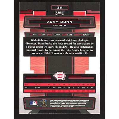 This is a 2005 Absolute Memorabilia Retail Adam Dunn baseball card. The card is #29 and pictures show condition.