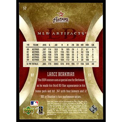 This is a 2005 Artifacts Lance Berkman baseball card. The card is #57 and pictures show condition.